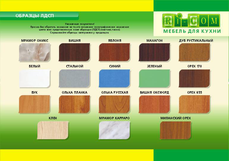 | образцы ЛДСП | образцы пластика | образцы ткани-1 | образцы ткани-2 | Уважаемые покупатели! Мы рады представить вам свою продукцию. Наша мебель прекрасно впишется в ваш кухонный интерьер, создаст уют и удобство в вашей жизни. мебель изготовлена на импортном оборудовании. Все представленные модели кухонной мебели могут быть сделаны по вашему желанию из самых различных цветов ЛДСП, ткани и облицовочного пластика! Уголки могут быть обработаны меламиновой кромкой или врезным кантом. Наши уголки могут комплектоваться любым из указанных в каталоге столов! ждем вас! |